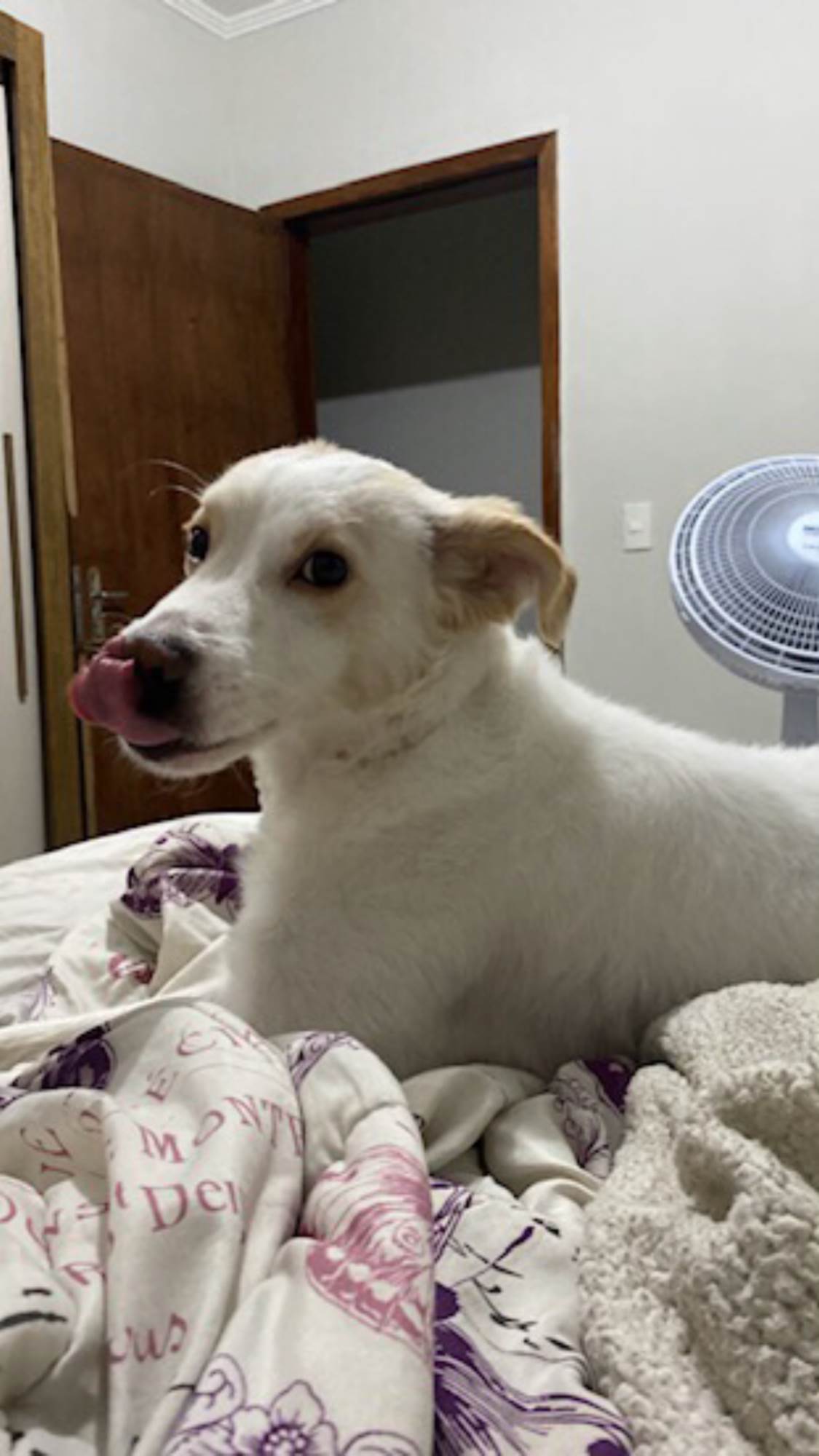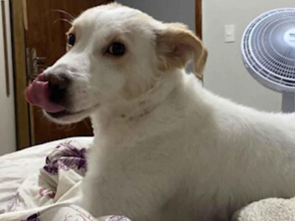 Cachorro médio, 3 anos, SRD-ViraLata, cor Branca.