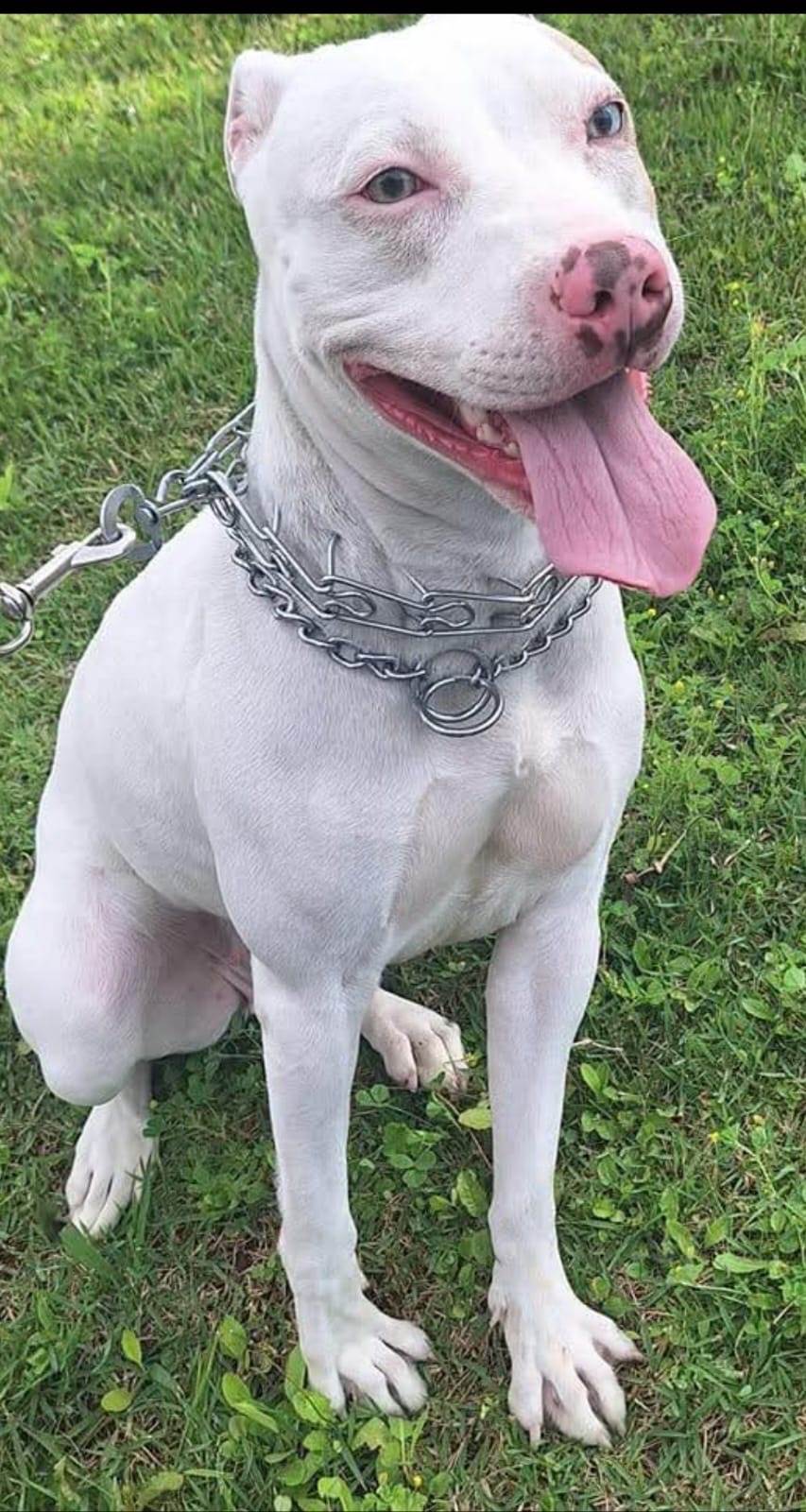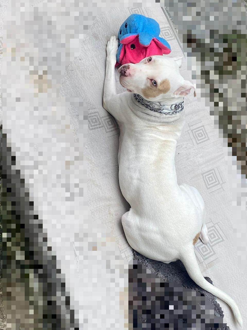 Cadela média, 2 anos, Pit-Bull, cor Branca.