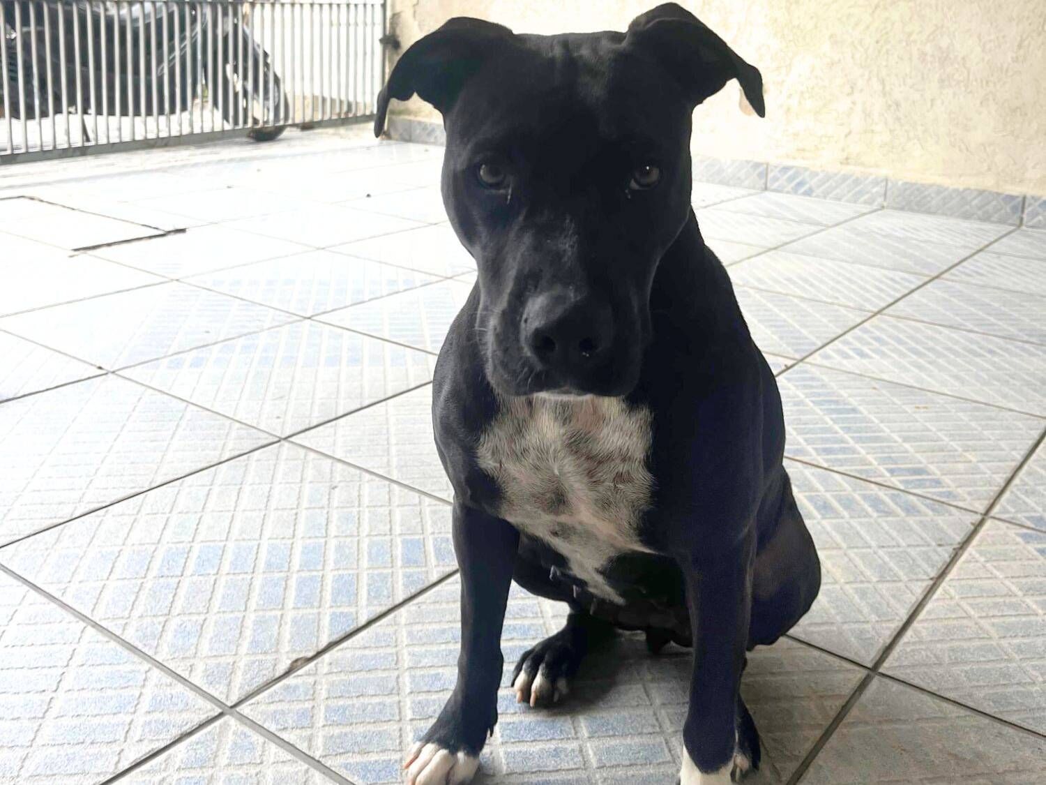 Cadela média, 1 ano, Pit-Bull, cor Preta.